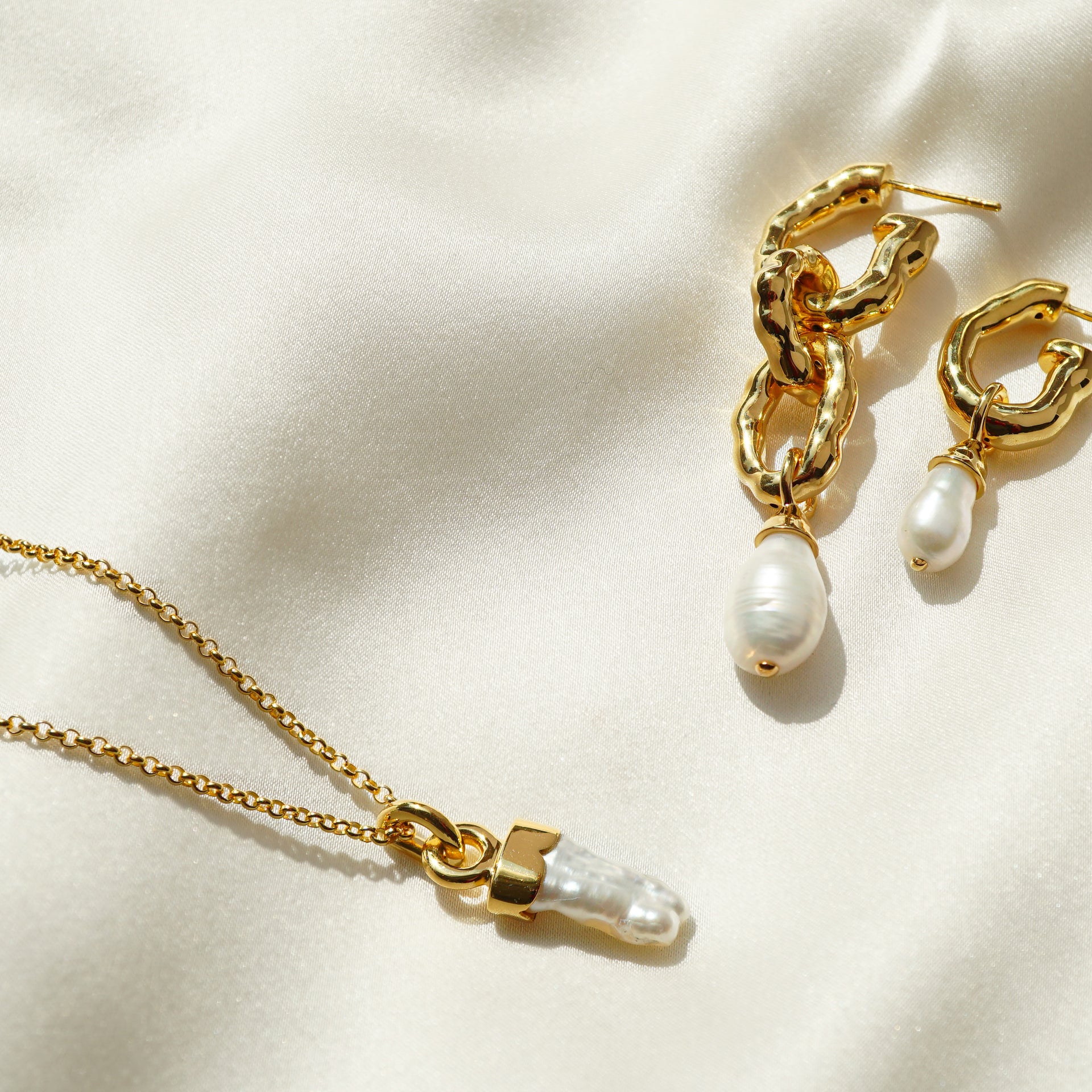 Eine zeitlose Kollektion, inspiriert von der natürlichen, individuellen Form der Perle. Sie vereint feine ovale Süßwasserperlen, größere tropfenförmige Perlen und einzigartige Barockperlen – jede ein Unikat.