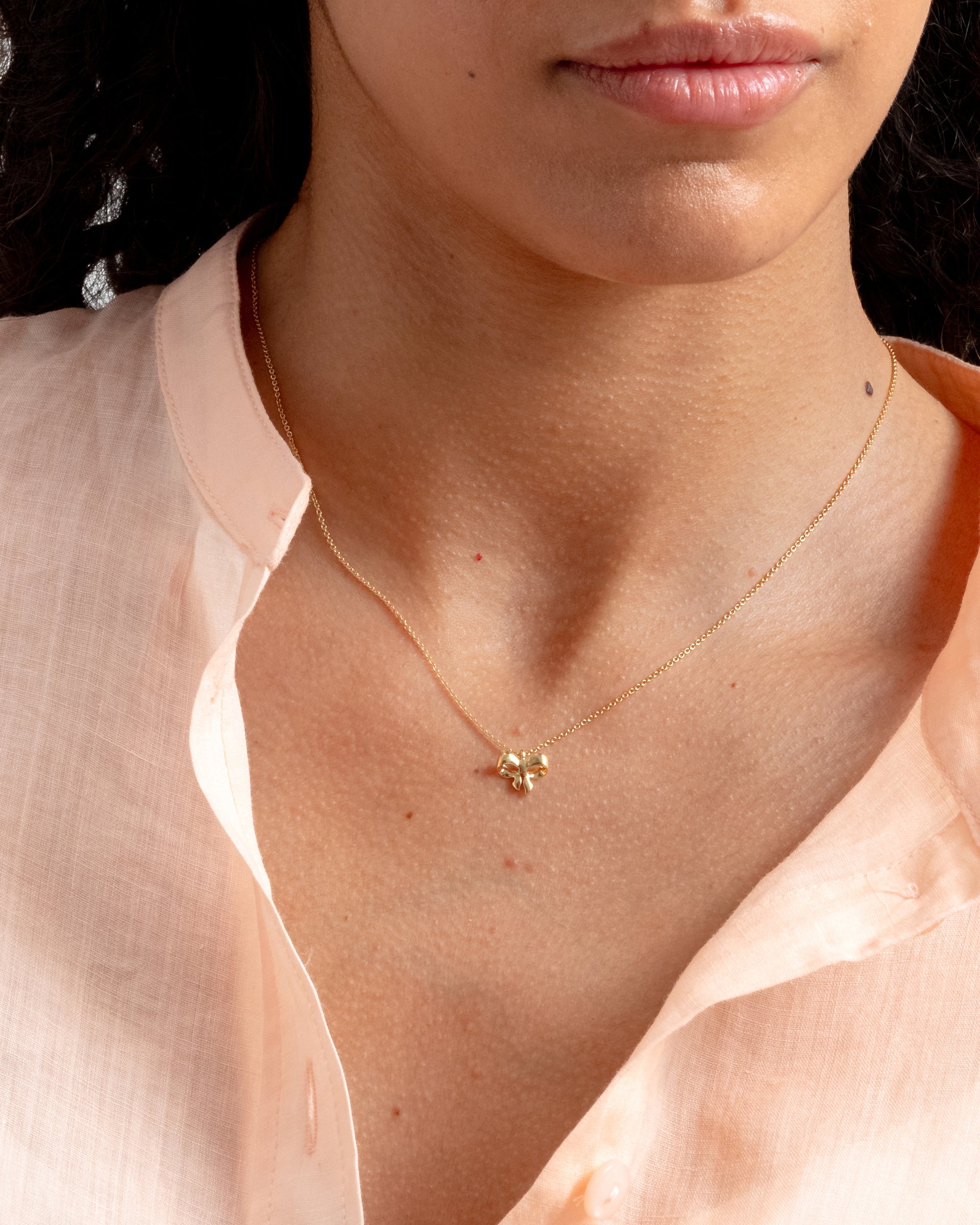 Halskette mit einer strukturierten, glitzernden Kette und einem kleinen Rosette anhänger, gefertigt aus 100% recyceltem Silber und vergoldet mit 18K. Ein Armband für jeden Anlass, das wirklich ins Auge fällt.