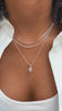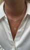 • A product shot of the Sheer Station Necklace in gold, featuring its delicate chain design with small, evenly spaced dots.Modell som b√§r tv√• guld halsband med tv√• berlocker. A product shot of the Sheer Station Necklace in gold, featuring a delicate station chain with tiny, shining dots.A model wearing the Sheer Mirror Necklace in gold, layered with another delicate gold chain necklace to create a stylish stacked look.A close-up of a model wearing a layered necklace combination featuring the gold Sheer Station Necklace with a Beloved Mini Letter 'S' pendant and a Beloved Heart pendant, paired with the Treasure Multi Pearl Necklace.