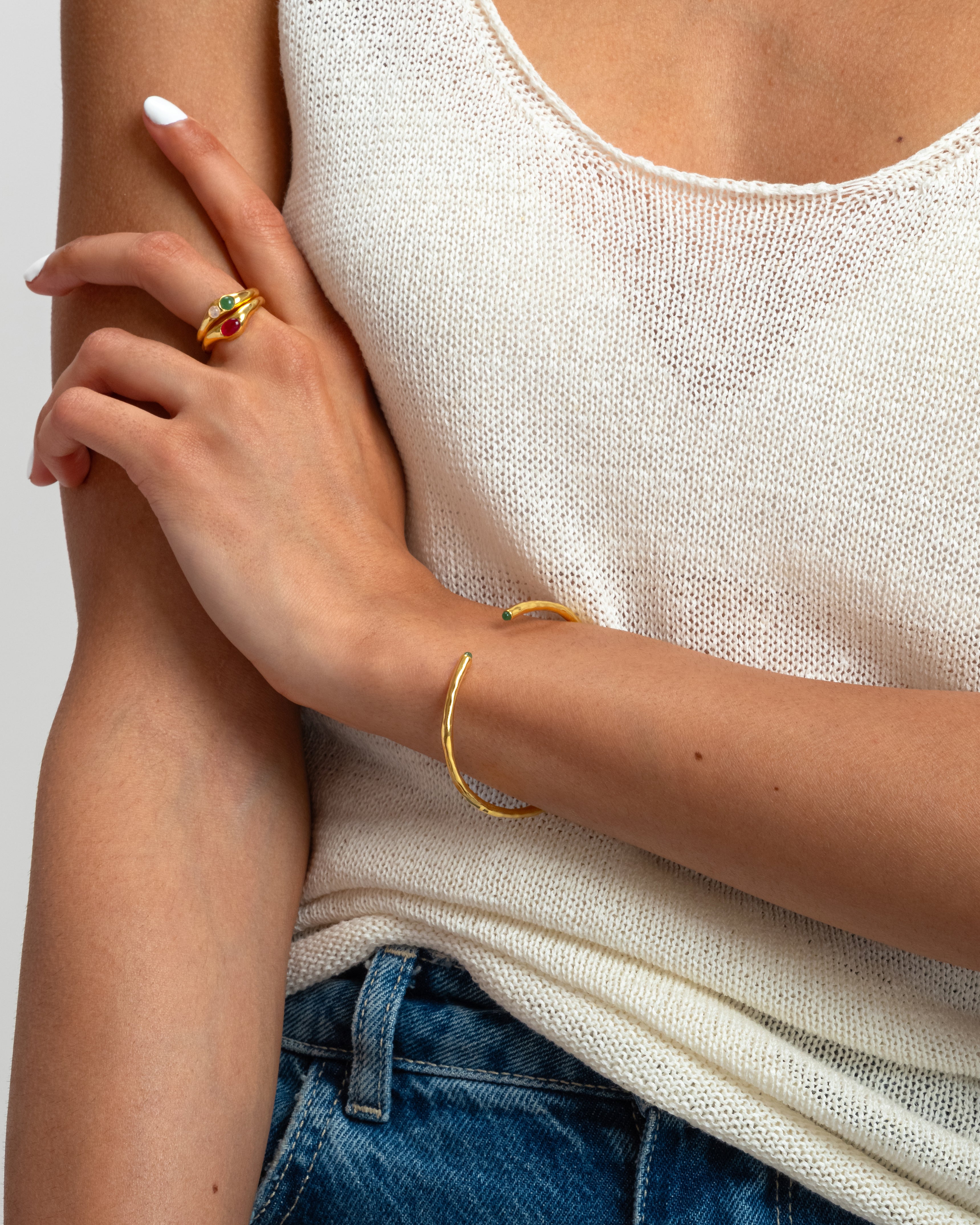 Våre smykker er håndlagde i ekte sølv. Materialet er 100 % resirkulert 925 sterlingsølv – et bærekraftig valg som holder høy kvalitet. Smykkene er belagt med 18K gull gjennom mikronbelegging. Alle våre leverandører er medlemmer av Responsible Jewelry Council, verdens ledende organisasjon for ansvarlig og bærekraftig smykkeproduksjon. Les mer om vårt resirkulerte sølv her.