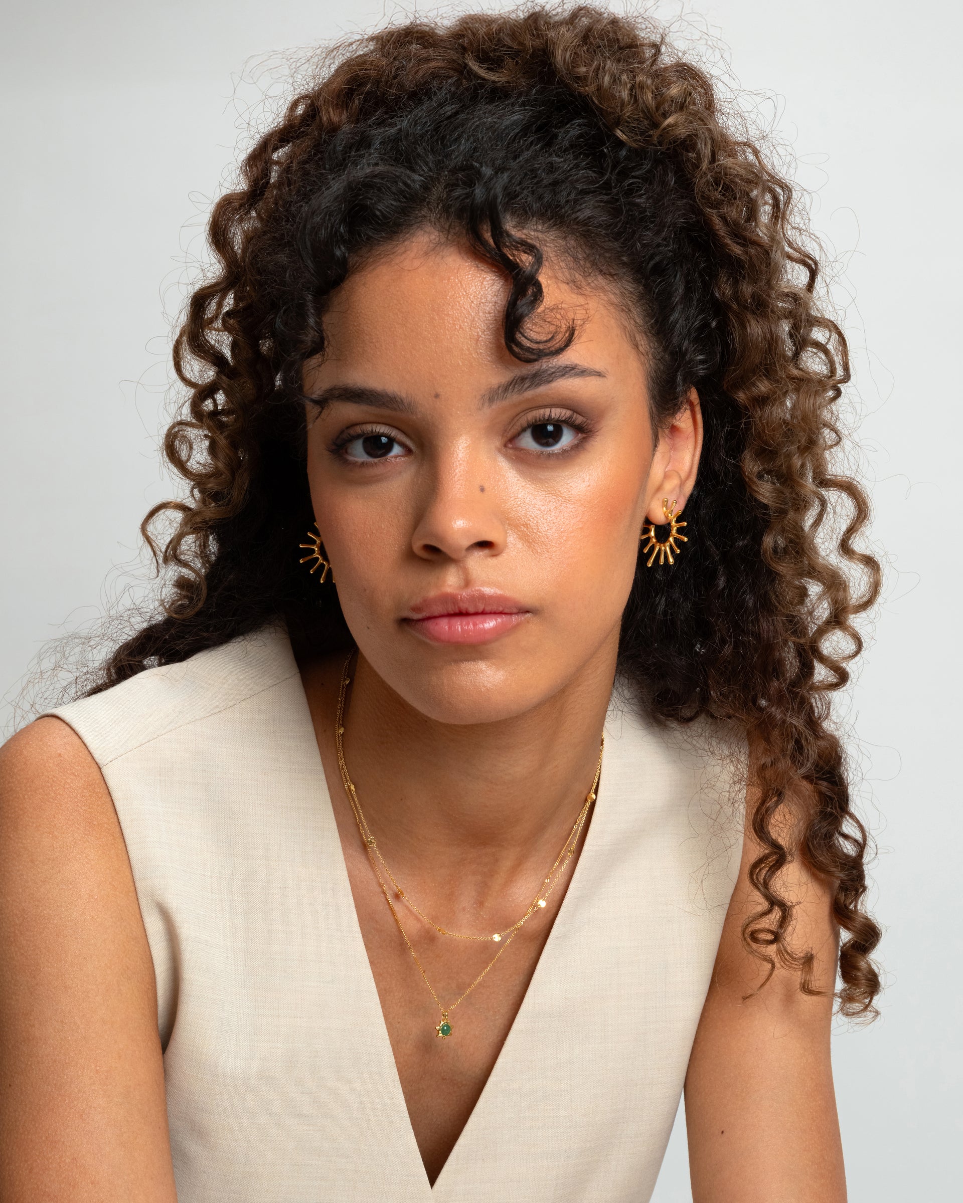 Håndlagde hoops inspirert av solen. De vakre øredobbene har et unikt design som får dem til å skille seg ut, og gjør dem til det perfekte statement smykket. Kombiner dem med andre smykker fra kolleksjonen for en komplett look. Laget av 100% resirkulert sterlingsølv og belagt med 18K gull.